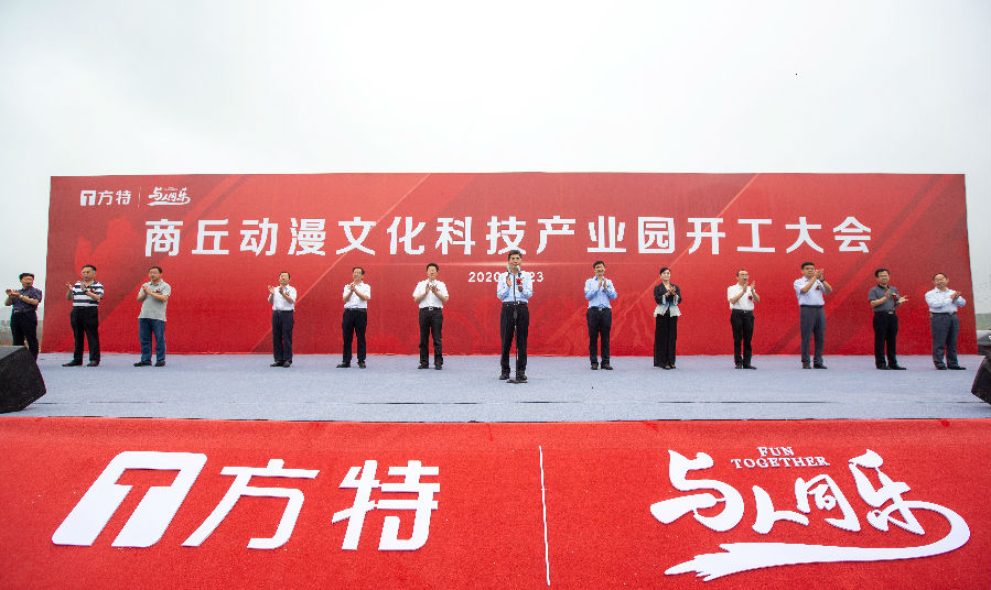 6月23日, 商丘動漫文化科技產業園項目開工動員大會在商丘市城鄉一體化示范區隆重舉行。商丘市委書記王戰營,商丘市委副書記、市長張建慧,商丘市人大常委會副主任、示范區黨工委書記何振嶺,華強方特集團總裁劉道強,華強方特集團執行總裁頓忠杰,華強方特副總裁劉永生、王啟程,商丘市有關部門與單位負責人以及河南省市多家媒體記者等共同出席了活動。