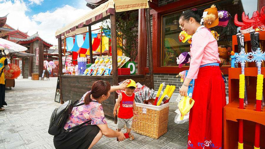 此外,綿陽方特內設的多家商鋪也提供琳瑯滿目的特色商品,其中有不少與傳統文化和非物質文化遺產深度結合的民俗文創產品,與樂園的氛圍相得益彰,吸引了不少人駐足賞玩和購買,為此次的歡樂旅程更添一份“文化味”。