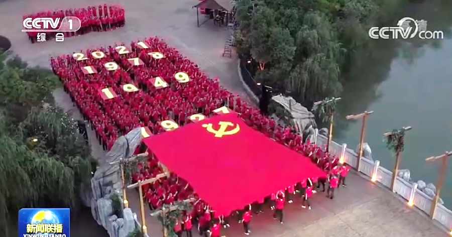 “在安徽蕪湖,近千名黨員代表和群眾用傳遞黨旗的方式慶祝建黨100周年。” 蕪湖方特旅游區舉辦的“黨旗高高飄揚”主題慶祝活動,更是獲得CCTV-1《新聞聯播》欄目聚焦報道。在央視報道的畫面中,眾多黨員群眾身著主題文化衫,組成大型紅色方陣,將寬8米、長12米的巨幅黨旗高高托舉。鮮紅的黨旗隨風飄揚,緩緩穿越1921年至2021年期間的重大黨史事件年份牌,帶領現場眾人重溫黨的百年光輝歷程,深切表達了中華兒女愛黨愛國的深厚情懷。