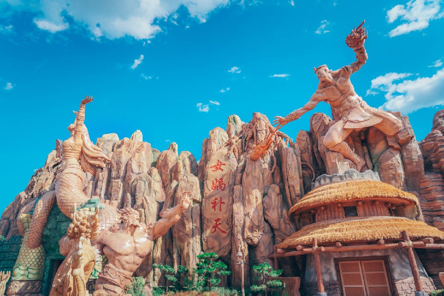 大型Dark Ride綜合性表演項目《女媧補天》,游客將乘坐“救世方舟”,跟隨女媧親臨上古洪荒地界,迎戰祝融、共工,最終奪取五彩石,飛躍不周山,經歷一場煉石補天、拯救蒼生的歷險之旅。