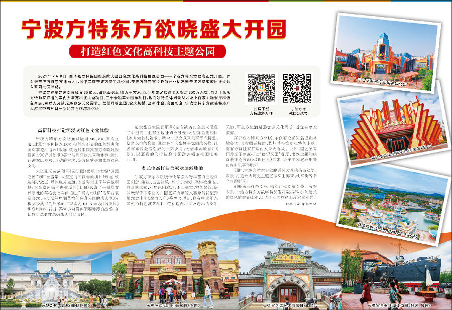 除了此次以新聞形式報道外,方特在今年還受到《人民日報》的兩次專題聚焦。今年5月10日,華強(qiáng)方特在江西贛州隆重發(fā)布了主題公園新品牌——“方特東方欲曉”,正式進(jìn)軍紅色旅游領(lǐng)域。隨著新品牌旗下贛州方特東方欲曉與寧波方特東方欲曉的陸續(xù)開園,憑借令人耳目一新的紅色旅游體驗,方特東方欲曉受到廣大游客的熱烈追捧,掀起了紅色旅游體驗熱潮。也正因此,當(dāng)贛州方特東方欲曉與寧波方特東方欲曉開園之際,《人民日報》分別在5月28日和7月9日,以專題形式對兩座主題公園進(jìn)行了詳細(xì)介紹。