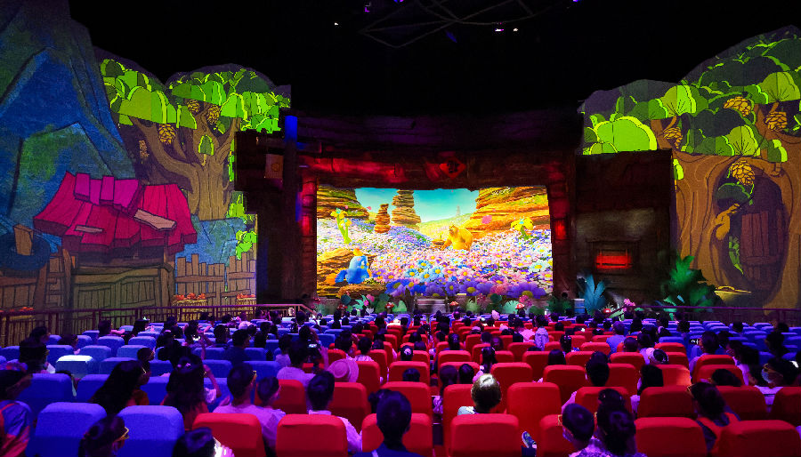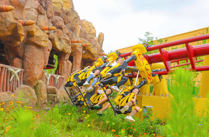 在旋轉環境4D劇場項目《熊出沒之重返侏羅紀》中,熊大熊二光頭強三人組穿越到恐龍世界,帶領游客們開啟奇妙史前探險之旅。不少小朋友在跟隨“熊強三人組”一起冒險后戀戀不舍,拉著家長要“二刷”。