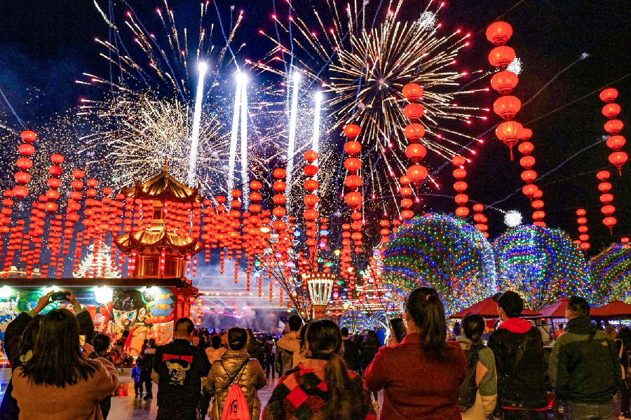 千燈璀璨賀新春,煙花大秀慶團圓。春節臨近,各地方特主題樂園立足中國傳統文化,創意推出賀歲光影煙花秀、新春廟會、花車巡游、舞龍舞獅、火把狂歡節等眾多迎春盛典,傾力打造“燈耀萬家”“祈福女神”“兔飛萌進”等一系列巨型網紅花燈組合,并延長營業時間,加開夜場,讓廣大游客潮玩新春,闔家歡樂。