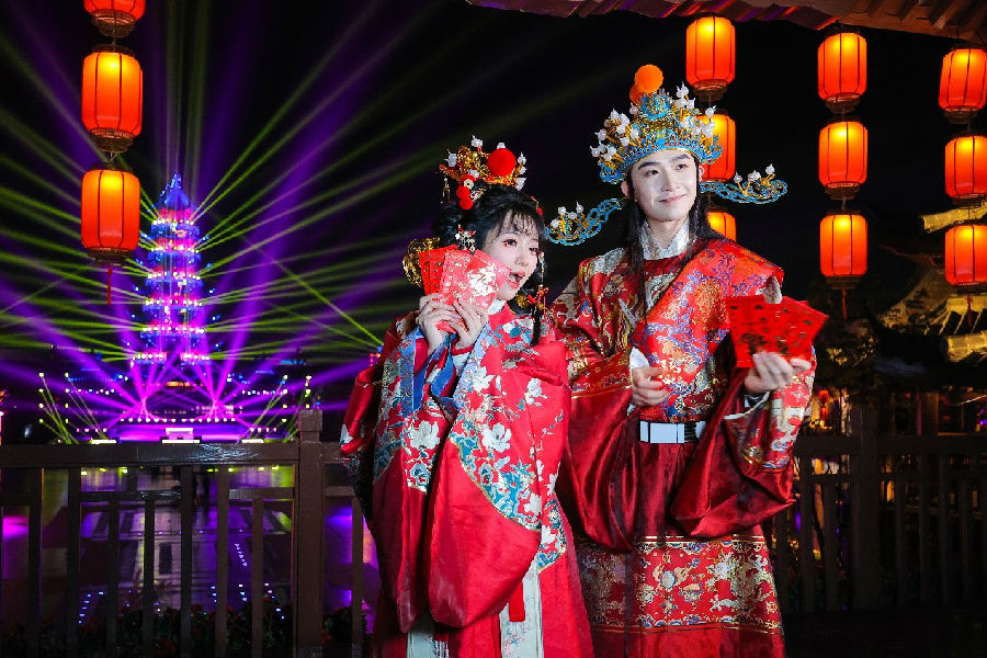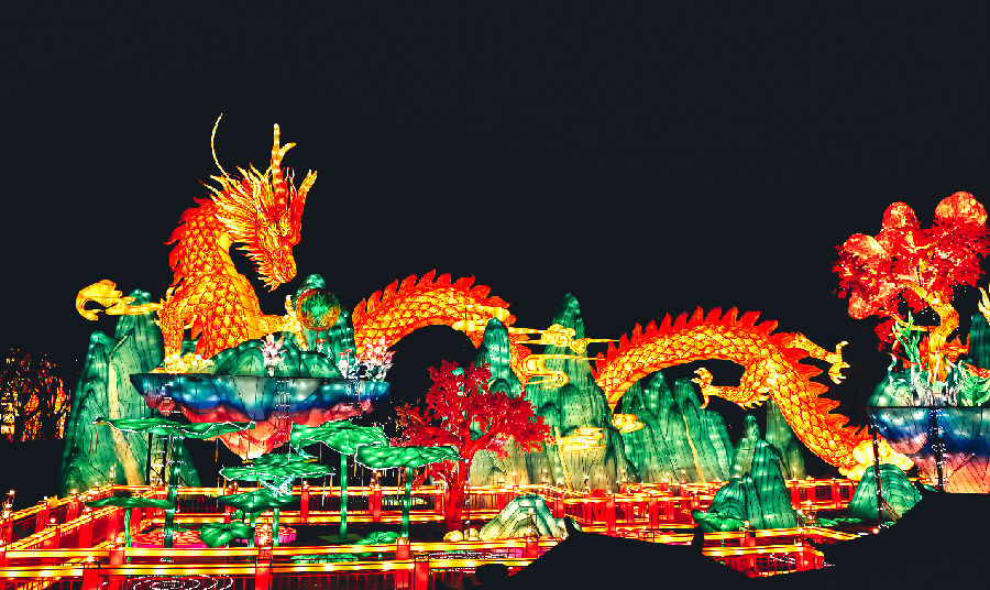 正逢甲辰龍年,各園區(qū)創(chuàng)意打造巨型花燈、璀璨焰火、無人機(jī)大秀等“龍”主題的光影盛宴。