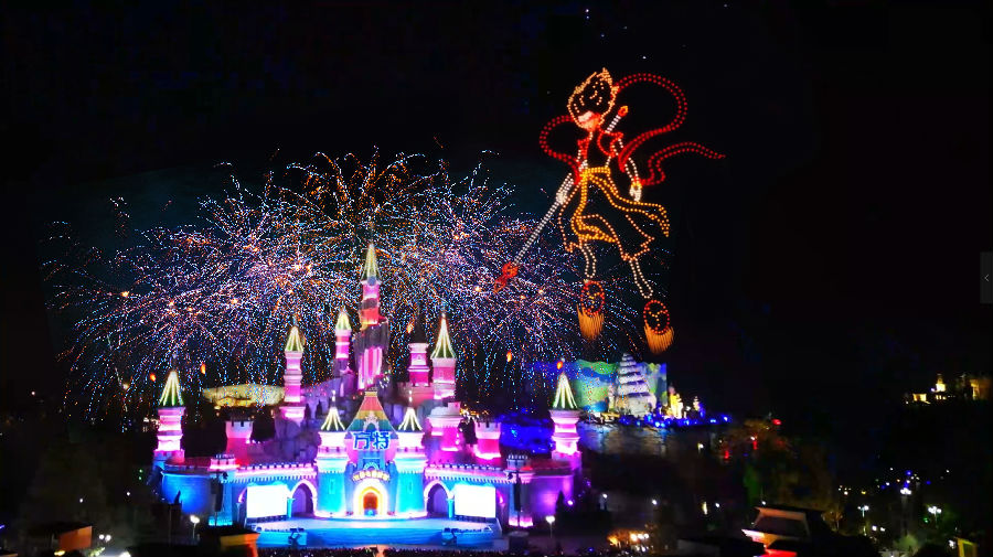假日期間,異彩紛呈的無人機煙花秀將在各地方特主題樂園持續上演。荊州方特“國風潮玩節”八大新品煙花絢麗首秀,定制主題煙花舞劇演繹《荊城焰慶》;嘉峪關方特“七彩祥云煙花秀”“星空光影秀”齊亮相,以科技和光影獻禮十周年。此外,飛天焰火秀、星河大賞、極光煙花秀等絕美演出,將在“五一”期間為游客帶來全新震撼體驗。