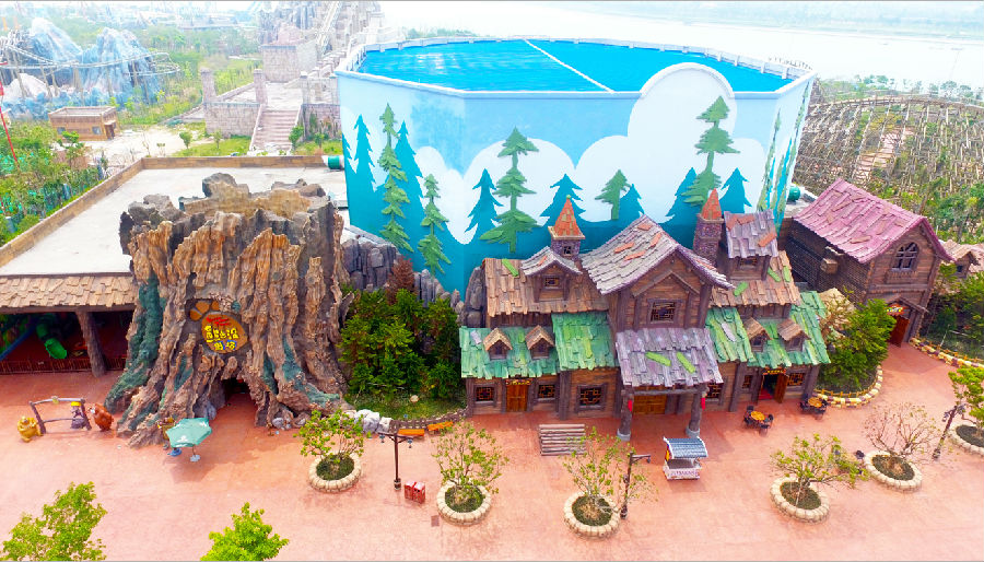 叢林、房屋、樹洞……這里儼然是一個真實的童話世界!從《熊出沒劇場》的建筑外觀開始,設計師就依據 “熊出沒”動漫作品原型,盡心打造劇場的實景。在劇場門口,清新自然的原生態叢林風撲面而來,游客們在走進劇場前,就可以提前感受原汁原味的“熊出沒”世界。