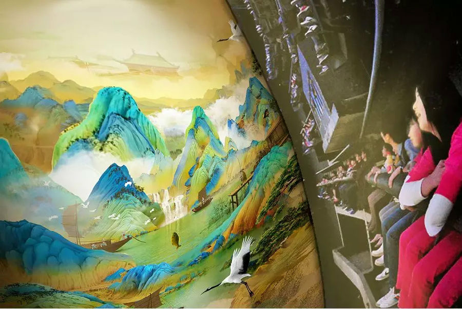 2018年8月,方特主題樂園震撼開啟了首個(gè)中國畫球幕飛翔影院項(xiàng)目《飛越千里江山》,廣受游客的好評(píng)。該項(xiàng)目還榮獲科睿國際創(chuàng)新節(jié)“科技創(chuàng)新類金獎(jiǎng)”殊榮。華強(qiáng)方特300位數(shù)字藝術(shù)家耗時(shí)一年,運(yùn)用數(shù)字3D技術(shù),將傳世名畫《千里江山圖》還原在了22米高的巨型球幕上,讓游客身臨其境感受青綠山水巔峰之作的美妙意境與磅礴氣勢(shì)。《飛越千里江山》運(yùn)用數(shù)字技術(shù)讓傳統(tǒng)文化重新綻放出獨(dú)特魅力,這件作品斬獲科睿“科技創(chuàng)新類金獎(jiǎng)”可謂實(shí)至名歸。