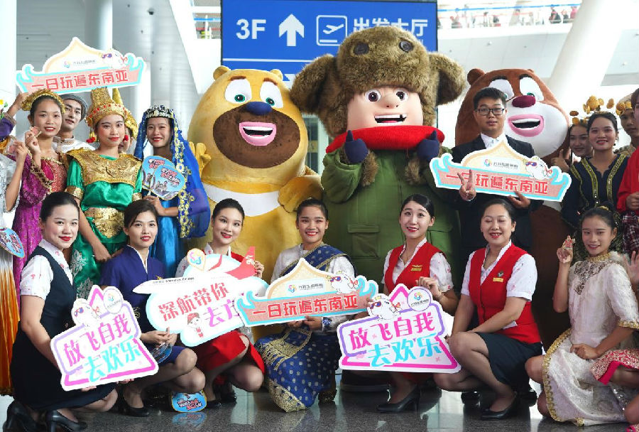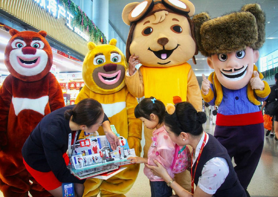 此次暑期聯合活動在南京祿口機場和南寧吳圩機場同時舉行。在活動現場,深航的值機柜臺和行李區被裝飾一新,隨處可見方特主題樂園的夢幻城堡、過山車、“熊出沒”等元素。來自南寧方特東盟神畫的專業演員帶來極具異域風情的東盟舞蹈,蕪湖方特東方神畫的專業演員則扮演了經典的古裝IP人物,以快閃舞蹈的形式為廣大旅客現場獻上了精彩的表演。