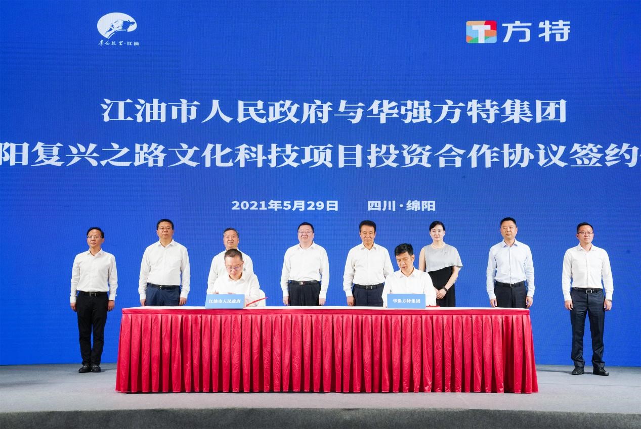 5月29日,綿陽市人民政府與華強方特集團在四川綿陽舉行了合作建設(shè)綿陽方特文化旅游項目框架協(xié)議簽約儀式;江油市人民政府與華強方特集團正式簽署“綿陽復(fù)興之路文化科技項目”投資合作協(xié)議。綿陽市、江油市相關(guān)政府領(lǐng)導(dǎo),華強方特集團有關(guān)負責(zé)人,以及媒體記者和各界人士..