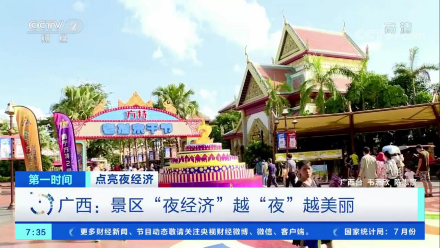 發(fā)展“夜經(jīng)濟(jì)”,夜間旅游是重點(diǎn)。華強(qiáng)方特旗下南寧方特東盟神畫主題樂園開啟了暑期“夜游東南亞”專場活動,不僅帶給游客全新的游玩體驗(yàn),也成為促進(jìn)當(dāng)?shù)匾菇?jīng)濟(jì)發(fā)展的全新動力。相關(guān)活動近日獲得央視聚焦,南寧方特精彩紛呈的夜間游園場面登上了央視多個頻道的新聞欄目..